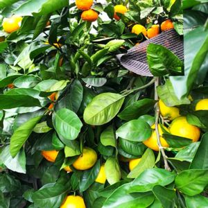 真ん中の画像はてっぺんの実です。 あとは全体にしなるように生っていました。 金柑より大きくミカンより小さいです。 すごく美味しそうでした🤩