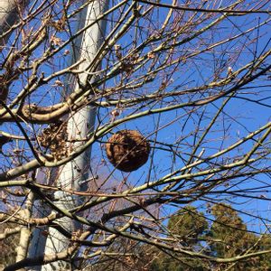 我が家のモッコウバラに蜂の巣が~〜~😱 小さいけれど、黒い蜂がウロウロしてた...なぜ今まで気づかなかったのだろう😞 どうやって退治すればいいのでしょうか?
