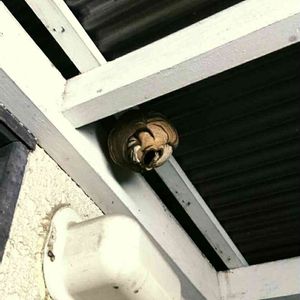 ヤバい💦 蜂🐝が巣を作ってるようだ… いなくなった隙を見て処分せねば💦