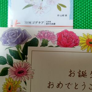 1月が誕生日🎂の有る月なので→ 色々な所から[ おめでとう ]の 花🌼の絵葉書等が届いています✨ ゴデチアの種入り紙袋・ガーベラ ブルーローズ🌹アプローズ・ カーネーション・赤い 薔薇・ ピンクのカスミソウ(ガーベラの脇) ブルーローズの 花言葉 夢 かなう ガーベラの 花言葉 希望 カーネーションの 花言葉 感謝の心 💠 赤いバラ🌹の 花言葉 愛 💝 💖 カスミソウの 花言葉 感激 💠 2021年 1月 13日 撮 影 💠 嬉しい 誕生日🎂の有る月 💠🌹