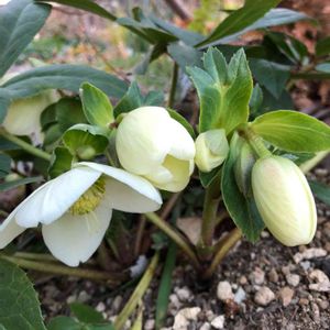我が家のクリスマスローズが咲き始めました♪地面に低い所に咲いているのでパチリするのが大変😃