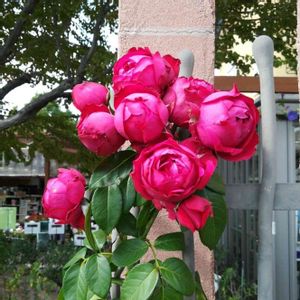 ガーデンストリートのスタッフ入り口に咲くルージュピエールドゥロンサール。 秋も可愛らしい花を咲かせています。