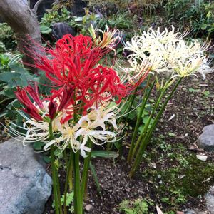 庭の彼岸花も咲き始めました。赤の彼岸花の方が遅いみたいです。