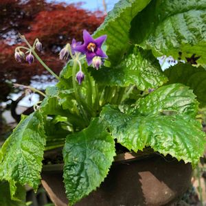 庭の濃色岩煙草の花が咲き始めました。 紫色の花が綺麗です。