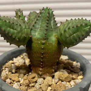 ちょっと色褪せてますが、 タグのネコ絵がカワイイ〜 ユーフォルビア・オベサブロウです。 子株がキレイに全方位に出てます‼️ 2週間前の週末、 お店で下の子どもが ひっくり返して宙を舞い、 土が半分以上なくなったときは、 かなり焦りました。。。 店員さんに謝って、 急いで帰って家で植え替えしました。。 空いてる鉢がなく、 急ごしらえでこの空容器に植えましたが、なんだかんだで結構馴染んでます〜 子株も だんだん福々しくなってきてます‼️