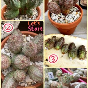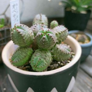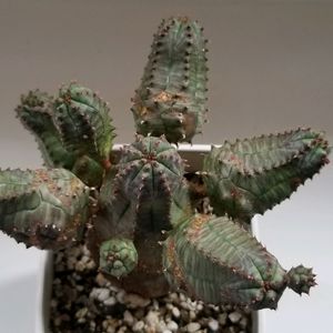 ユーフォルビア・オベサブロー ん?んんん?? 蕾ついてる?! この子は子吹きだけかと思ってた!! オベサみたくオスメス別なのだろうか??