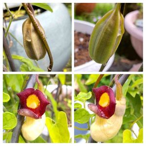 アリマウマノスズクサ 実が弾けちゃった‼️ 昨日まではそんな素振り見せてなかったのに💦 こんな雨の日に弾けちゃって大丈夫? なんか、まだ弾けるのには早いような… 採取して良いのかなぁ❓️🤔