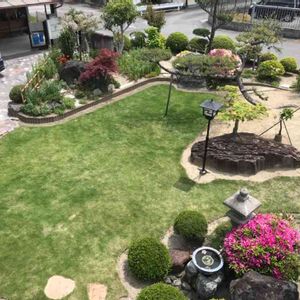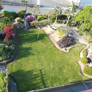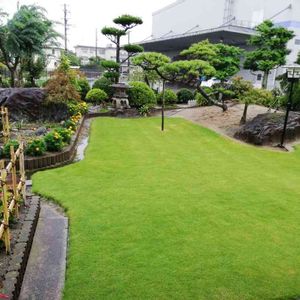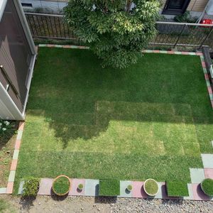土日旦那と暑さに負けながら庭の半分だけ芝の植え替え 元気に育ってくれるかが心配😰