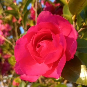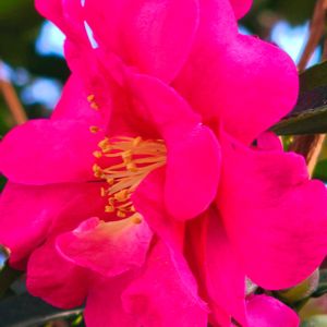 北風が強くて すごく寒い日でした 吹きすさぶ風の中、華やかな色の山茶花が咲いていました