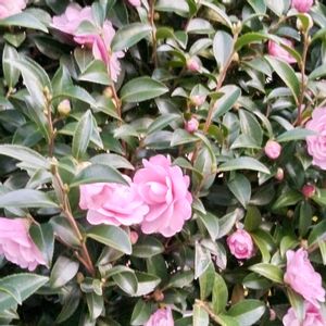 山茶花です。 白い方は満開 ピンク🩷の方は 未だ咲き初めでした。 蕾がいっぱいついて いました。