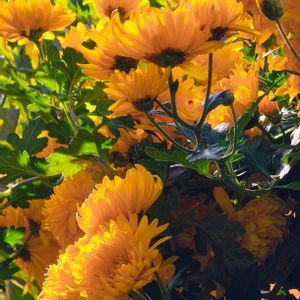 朝はどんよりとした曇り空でした。 午後になったら ちょっとずつ回復して来ました。 菊の花、遊歩道の一角に咲いています 陽射しを受けて、黄色が山吹色に見えました