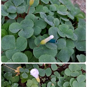 白のオキザリスの蕾 ハボタン…