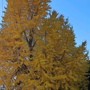 こんばんは😊 イチョウ ①②銀杏がすっかり色付いてハラハラと散っています🟡 日が傾いて一段と綺麗でした。 ③④今日のお月様(午後4時頃)十三夜…?🤔🌔
