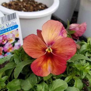トーホクさん パンジー 『プティシャトン かわいい子猫』 オランジア よく行く花屋さんで見つけちゃったよ。 アンティークレッドにオレンジかな?それともイエローかな? 真っ赤じゃなくて、くすんだ赤ってところに😍💖🏹💘Σ(°꒫°๑=͟͟͞)➳♡ズキューン🔫 ってきた。