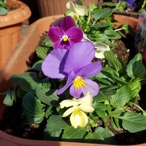 お疲れ様です🎶 "ビオラプラス" 天使の誘惑ଘ(੭*ˊᵕˋ)੭➳♡ ビオラとパンジーが融合した新しい品種 丈夫で花数の多いビオラとパンジーの華やかさをプラス 咲き始めはレモン色→→青色へ いいとこ取りの品種ですね⭐️⭐*゜ 青というか紫系かな(๑•᎑•๑)♬*゜