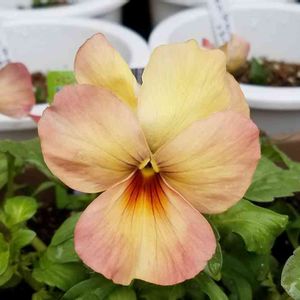 パンジー ハニー ウォータリーアイズ🌼 どうにもこの子が好きなんですよね〜☺️❤️ もうちょっと薄い色のも好きだし真ん中が黄色がかってるのも好きだし…😍いかん!ウォータリーアイズだらけになってしまう🤣 悩みに悩んで1株この子を選びました😆🎶