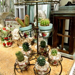ミニサボテン★ マフィンラックに飾ってみました! ミニ鉢をリメイクして苺柄🍓に❤︎