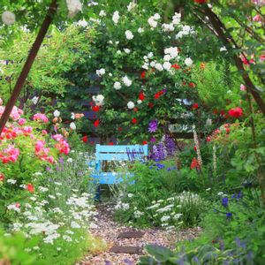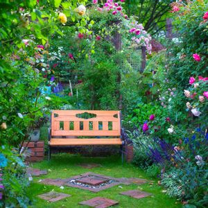 おはようございます🎶 昨日のメインガーデンになります^_^ 実はベンチの後ろのナイアガラフォールはまだ咲いてませんが、もう充分な景観になりました! お近く皆さま宜しければ週末のオープンガーデンにお越し下さい🤗🥀