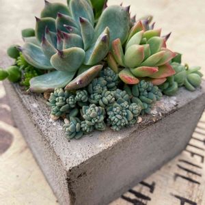 木の枡のコンクリート化計画 みんさんに頂いた結婚式の木の枡、コンクリート風ペイントを購入したので、塗ってコンクリート化しました😆 みんさん、ありがとうございます😊
