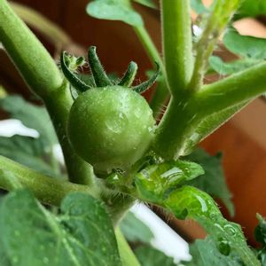 我が家の初トマト🍅 あと、何個できるか、楽しみです^_^