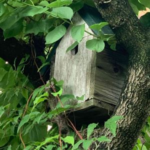 杏の木に懸けた巣箱。もう何年も空き家です。😂今年は下見にはきたんですが、どうもお気に入り召さなかったようです。😅 来年はリフォームして、新婚さんをお迎えしたいと思っています。😄
