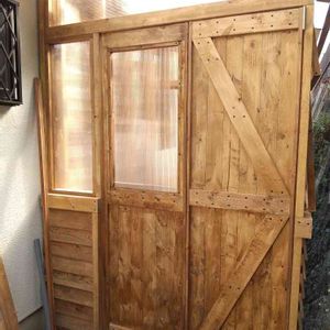 裏庭素敵化計画⑯ 梅雨の晴れ間にやっと作業する時間が取れました!! ついに! 扉も完成✨ 折れ戸なんです😎 扉の調整に苦戦しました