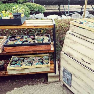 いよいよ無限多肉ループで置場所に困ってきたので😅ファストフード店のゴミ箱を譲り受けて道具入れと棚を作ってみました😄 丁寧に作るより早く作りたい性格から粗だらけ💦