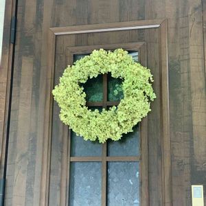 自家製アナベルのドライフラワーで大きな玄関リースを作りました✌️ 退色するだろうけど、玄関がグリーンで華やかになりました✨