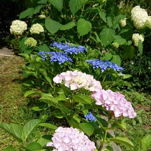 千代女 中途半端な蕾だけど色が1番わかるので☝️✨ 去年ピンクの開花鉢を買って3月に庭に植えました‼️ ピンク→ブルー またはその逆もしかり、反対色とまではいかないけど、こんなに変われるなんてアジサイは【魔法の花】だと思う~💡 ハイドランジアンの皆さんはみんな魔法使いなんだ☝️✨