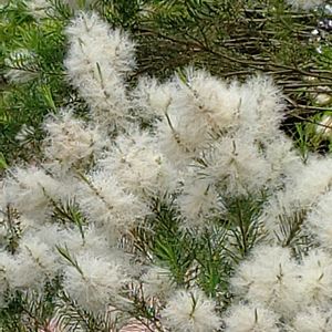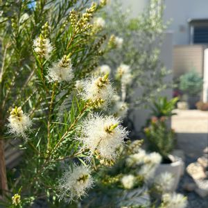 メラレウカ スノーインサマー 白いふわふわが咲いてきました😊 近付くとふんわり良い香り✨
