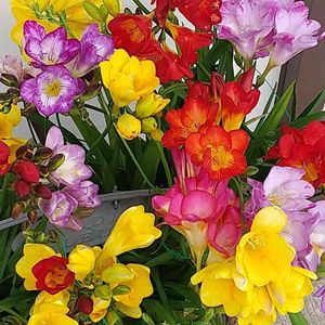 4月14日。 花友さんから頂いたたくさんの球根、色んな色の花が咲きました。 とてもいい香りで見る人が皆ステキね~と☺️