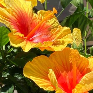 黄色に真ん中がオレンジ色の ハイビスカスです。