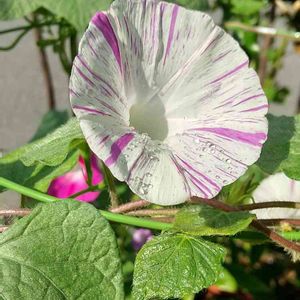 かわいい💠😆 去年、知り合いのお家で咲いてるのを見て一目惚れ。 タネをいただいて蒔いたら、花開きました。 上の方の葉が小さく縮れてるのは暑すぎるせいだとか… ほんとに朝から暑い毎日に爽やかさを与えてくれてます。💮