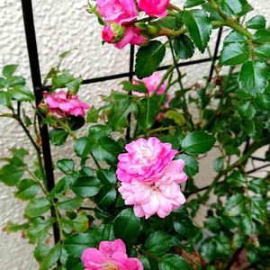 今日のお花は小輪のプチシヤンテ ハッピートレイルズです🌹🌿😊八重で濃いピンクから白っぽくなっていきます🌹🌿😊返り咲きで咲き初め玄関を明るくしています😊💕可愛いです🌹🌿😊 今日も1日お元気に〜😊