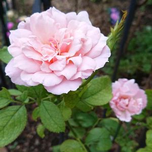 おはようございます😊 今日のお花は薔薇のダフネです🌹🌿😊返り咲きで八重のピンク色です🌹🌿😊可愛いです🌸🌿😊涼しくなって薔薇も咲きだしました🌹🌿😊 今日も1日お元気に〜😊