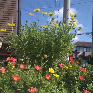 お早うございます。 北アメリカ原産のヒマワリの仲間🌻ヤナギバヒマワリの花と蕾です。秋の涼しくなった時に咲き出します。ヤナギバのとおり葉は細長いです。 別名:ヘリアンサス、ゴールデンピラミッド。 主な見どころ(花)9〜10月 🏷日曜日はビタミンカラーの日