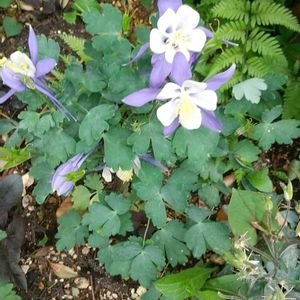 オダマキが一輪 我が家の庭の、ロックガーデンの中に 小さな可愛い花が💕 初めて見る色で👀が点になりました 嬉しい発見です😃