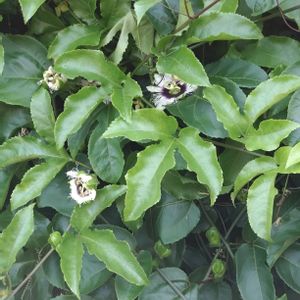 我が家のグリーンカーテン☺️ 今年は果物時計草の(枝?蔓?)を左右に誘引して、夏の強い日差しの為のグリーンカーテンを仕立てようとしています。 その副産物?パッションフルーツ(受粉をしています)が 沢山実を付けています。 ネットもかけて,収穫が楽しみです😄