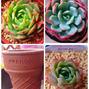 多肉祭りの戦利品その① 🔼アイシーグリーン ⬅アボガドクリーム ➡グリーンローズ これ、松ぼっくりフォルムっすか?🤣🤣🤣 可愛くてつい狩っちゃった✨