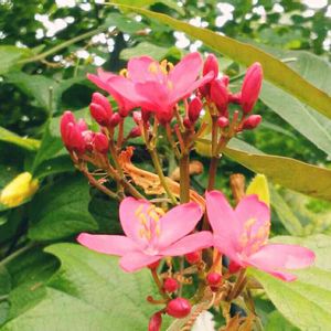 Jatropha hastata Griseb トウダイグサ科 原産地:キューバ🇨🇺 テイキンザクラの一種かな、と(^-^) 花言葉は「優れた美人」 提琴桜: 提琴は、中国の弦楽器で胡弓の一種。 葉がこの提琴に似ているのと、 花がサクラに似ている事から名づけられた。 第二次世界大戦で南洋で戦った日本兵が サクラを偲んで名付けたと言われています。 2018/9/21 撮影