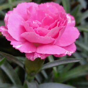 カーネーション💕いちごソフト💕 切り戻し✂️してからやっと❣️ 咲き出してくれました…なかなか花芽があがらずやきもきしたけど良かった~🎶 🏷️19日はピンクの日に参加させて下さいね🍀 今日もすでに朝から猛暑☀️😵💦 熱中症にはくれぐれも注意を~