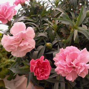 こんにちは😊 朝から爽やかな風が吹いて気持ち良いです🍀 カーネーション🌸いちごソフト🌸 挿し木から…優しいピンクちゃん︎💕︎💕ポツポツ咲いてくれます 🤭 今日は19日、ピンクの日ですね 🥰 今月も🏷19日はピンクの日! に参加させて下さいね🍀