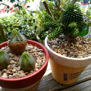 ユーフォルビアコーナー⤴️ ほかに花キリンがいます♥️ 見た目はサボテンに似てますけど子株はずすときに白い液体がたくさんでるのに驚きました😱💦それ見るとなんかごめんねー😢⤵️って気持ちになります😅 でもはずしますけどね(笑)