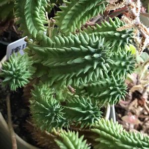 『笹蟹丸』 頭頂部からの葉がかわいい😊 群生待ちです❗ トゲはまだ無い❗ 何とも言えないデコボコな姿がお気に入り😁 『瑠璃光』 トゲトゲも触っても痛く無く、凸凹で見た目がかわいい❗ どっちも早く大きくなって~