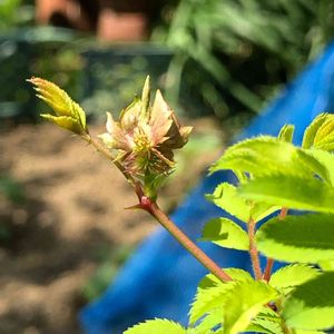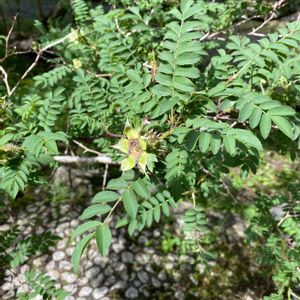 「サンショウバラ(山椒バラ)」のその後です😊 トゲが確認できます。この部分が実になるのですね🧐