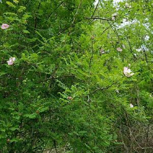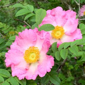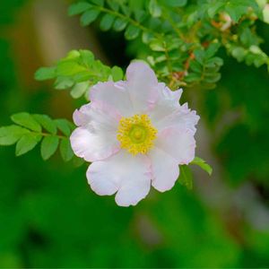 雨に濡れて色を増していた✨サンショウバラ(山椒薔薇) バラ科の耐寒性落葉小高木 名前は葉が山椒に似ていることから。 富士箱根周辺だけに自生する原種のバラ 日本固有種で絶滅危惧種に指定されている。