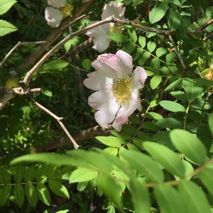 先日、近くの公園で出会いました🌸 一重の薔薇があるんですね🤔 ———— サンショウバラ(山椒薔薇、学名:Rosa hirtula)は、バラ科バラ属の落葉小高木。別名、ハコネバラ(箱根薔薇)ともいう。