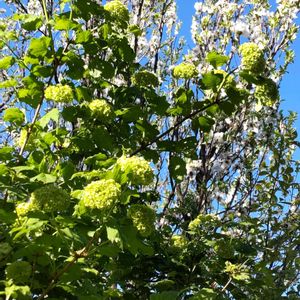 ビバーナムスノーボール わたしの庭にお迎えして初開花です✨ 黄緑〜白に色が変化するみたいなので楽しみ💗