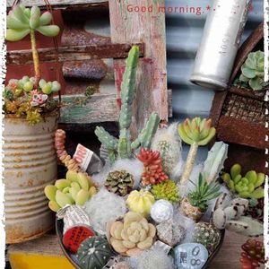 おはようございます(^-^) 只今、神戸は曇りです︎︎☁︎︎*. お天気斜めですが、、(何で斜めって言うんかな?)今日もはりきって 気持ちは晴れやかにいきたいと思います!¯\( ˘–˘ )/¯ Picは、近日発売の ミニサボテン+ちょこっと多肉のサンプル写真💡 曇りの時に撮ったから イマイチの写真です。。 今日 日差し出たらもう一回撮りなおそうかな(^-^) いつも、いいねやコメントありがとうございます🙏 本日もよろしくお願いします🍀