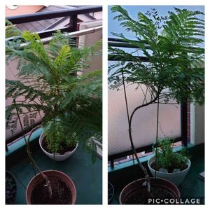 もうすぐ落葉します😌ジャカランダ🌿二鉢です😃 低木性の品種を育てています、鉢植えでも💠付きも良さそう🎶💙💜青紫色の💠待ち遠し~ぃ🤗🎶💙💜